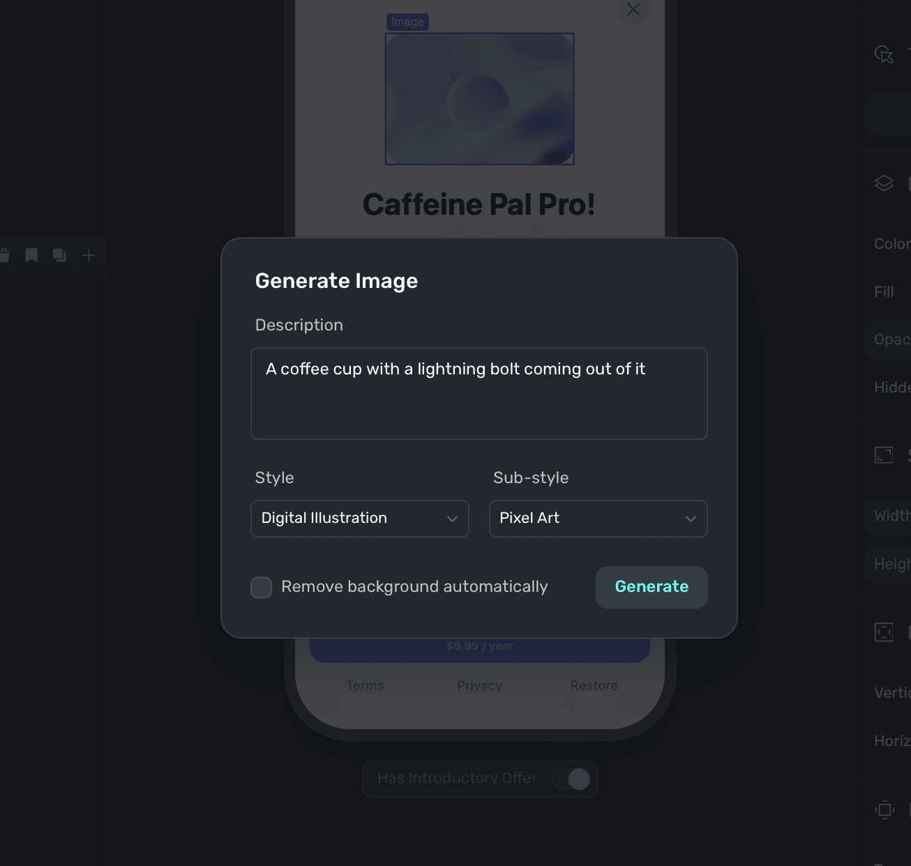 - Remove Background: This attempts to remove the background of the existing image element.