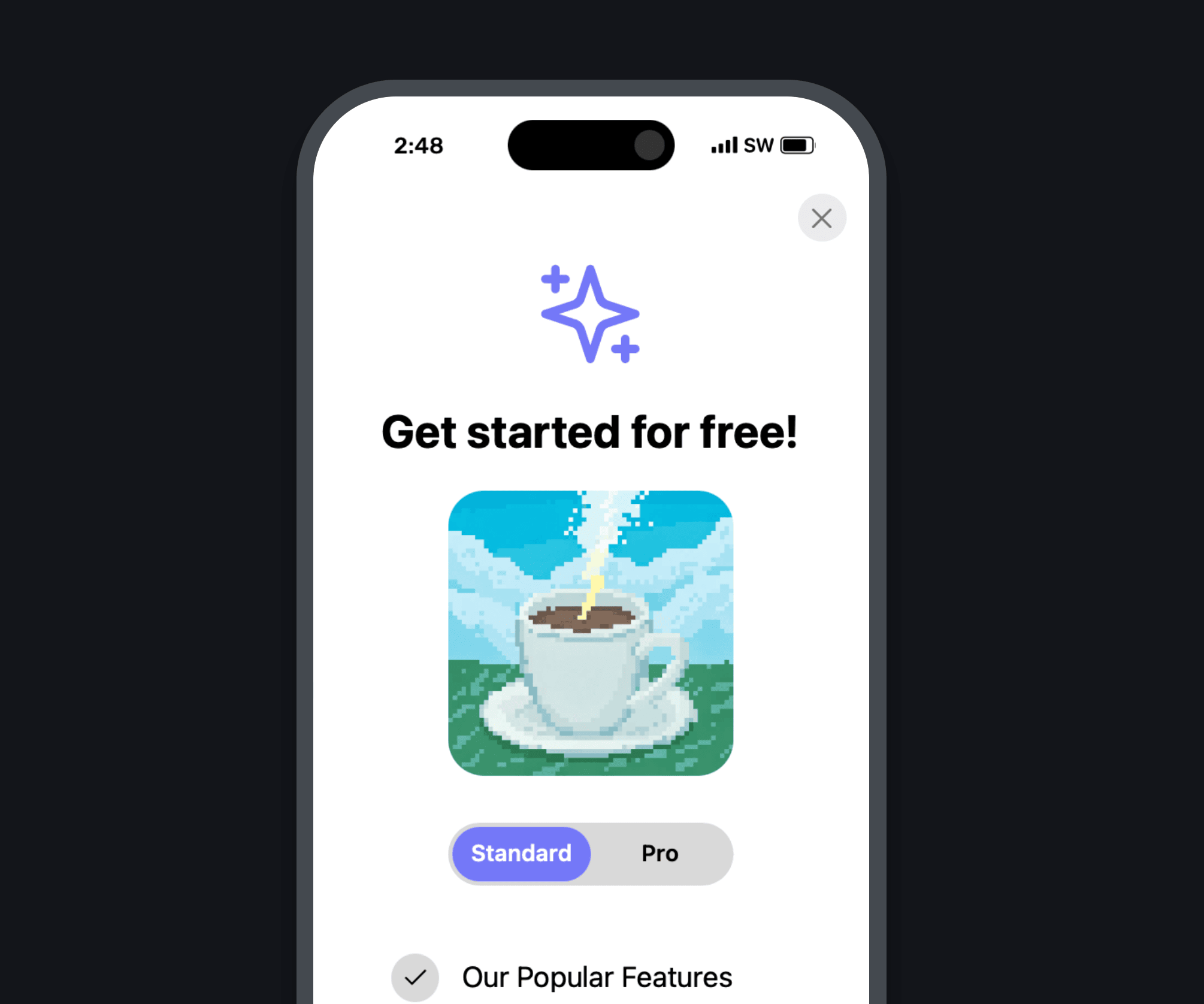 - Close: Closes the paywall or flow.