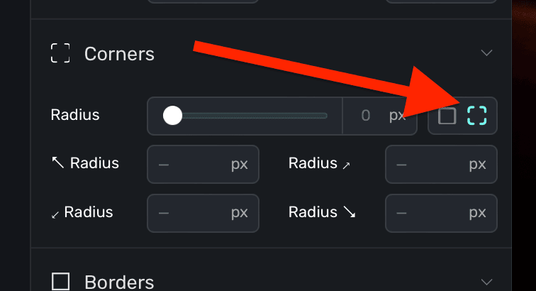 Note that you may not see any change unless the component has some sort of background or layer fill. Further, if you'd like to adjust just one or more corners, click the dashed square icon to individually enter values: