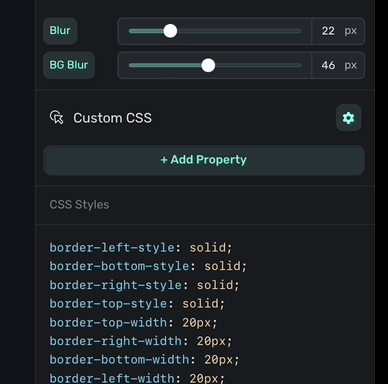 If you need to add some one-off custom CSS code, you can add them here. Just click + Add Property: