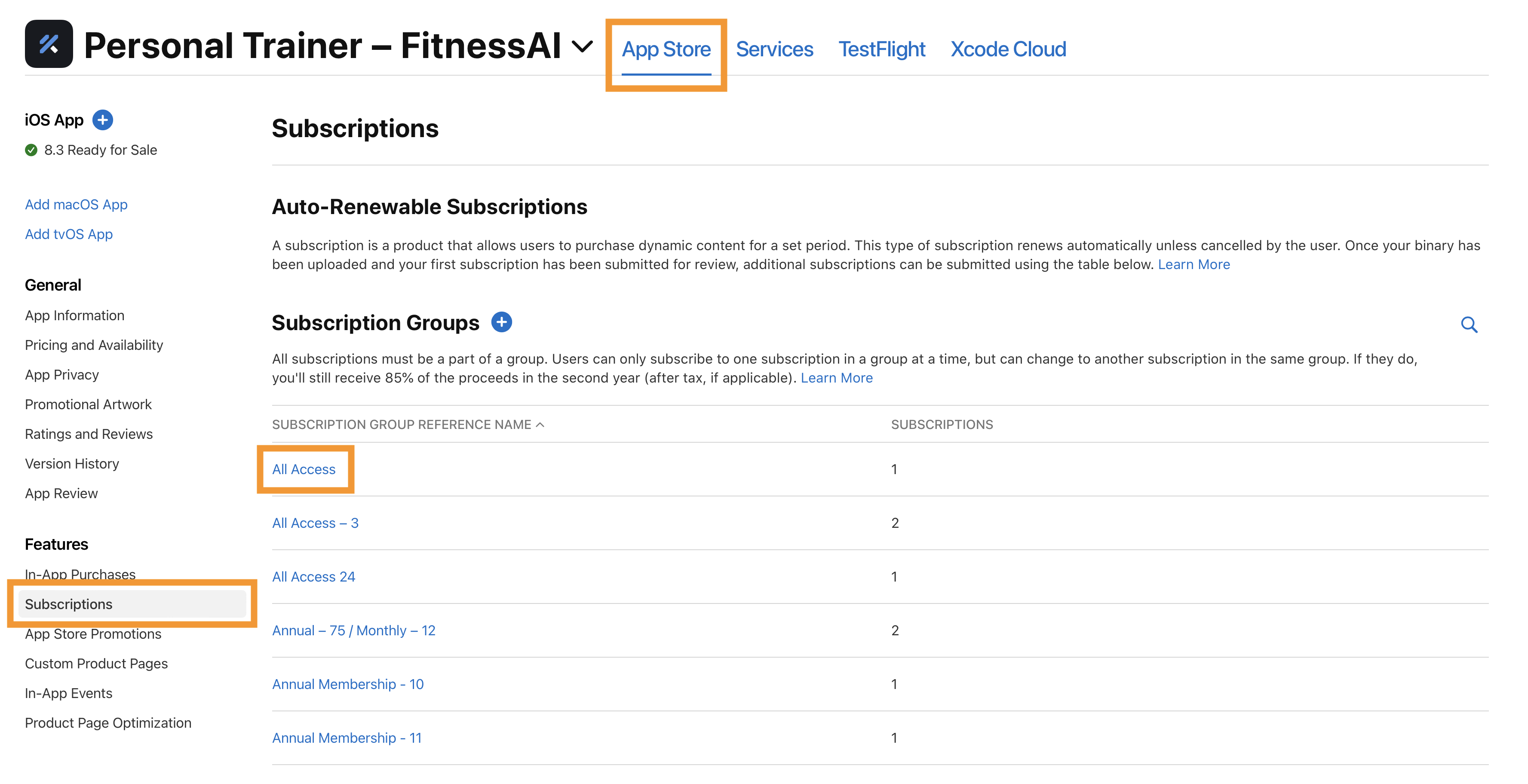 On App Store Connect, head over to Your App ▸ App Store ▸ Subscriptions ▸ Your Subscription Group: