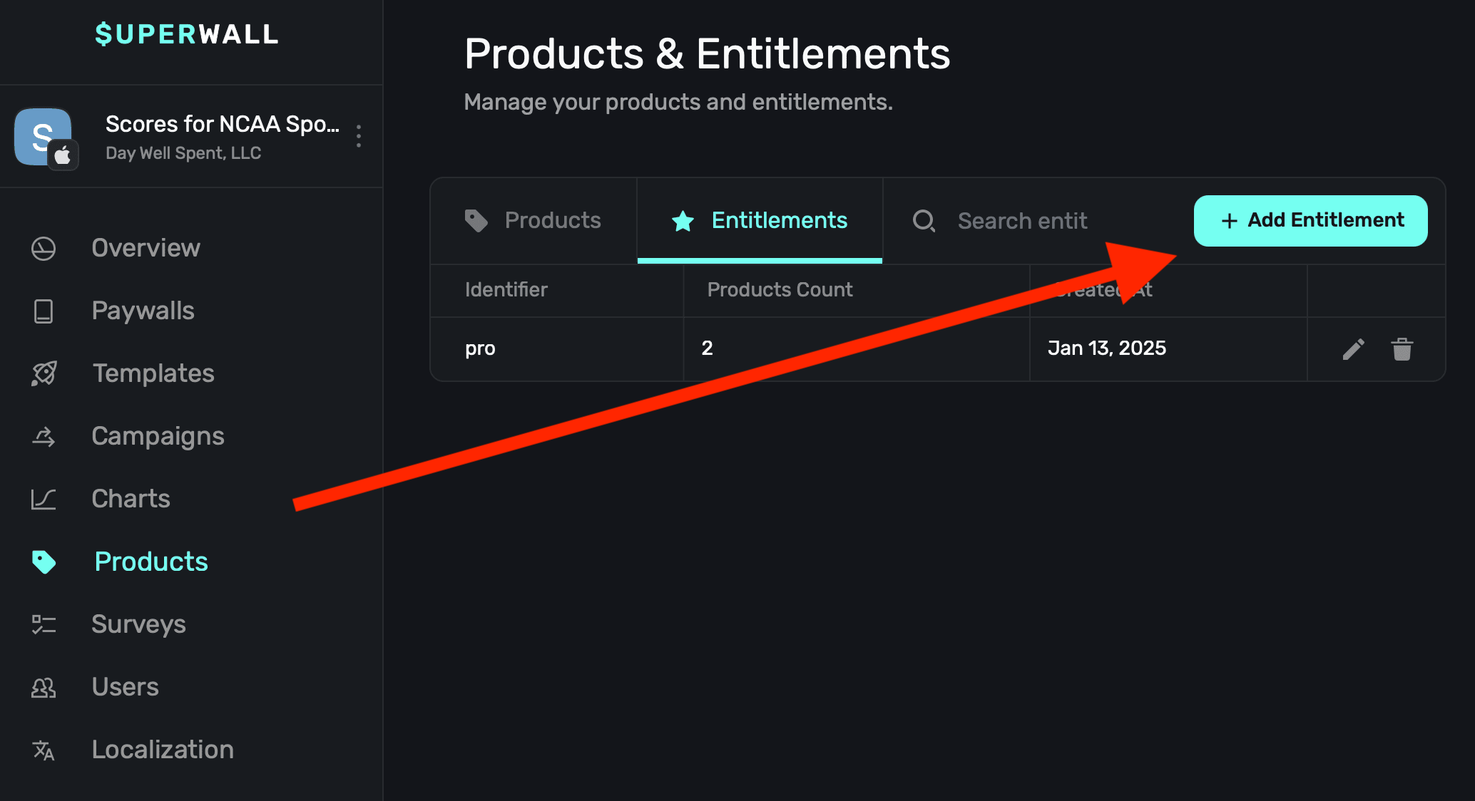 At this point, you can go back to your products and attach one or more entitlements to each one.