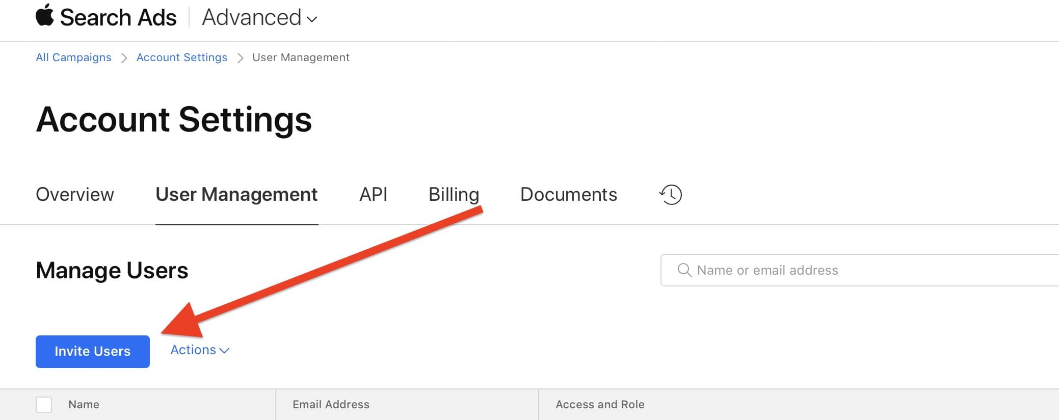 - Under User Management, click Invite Users.