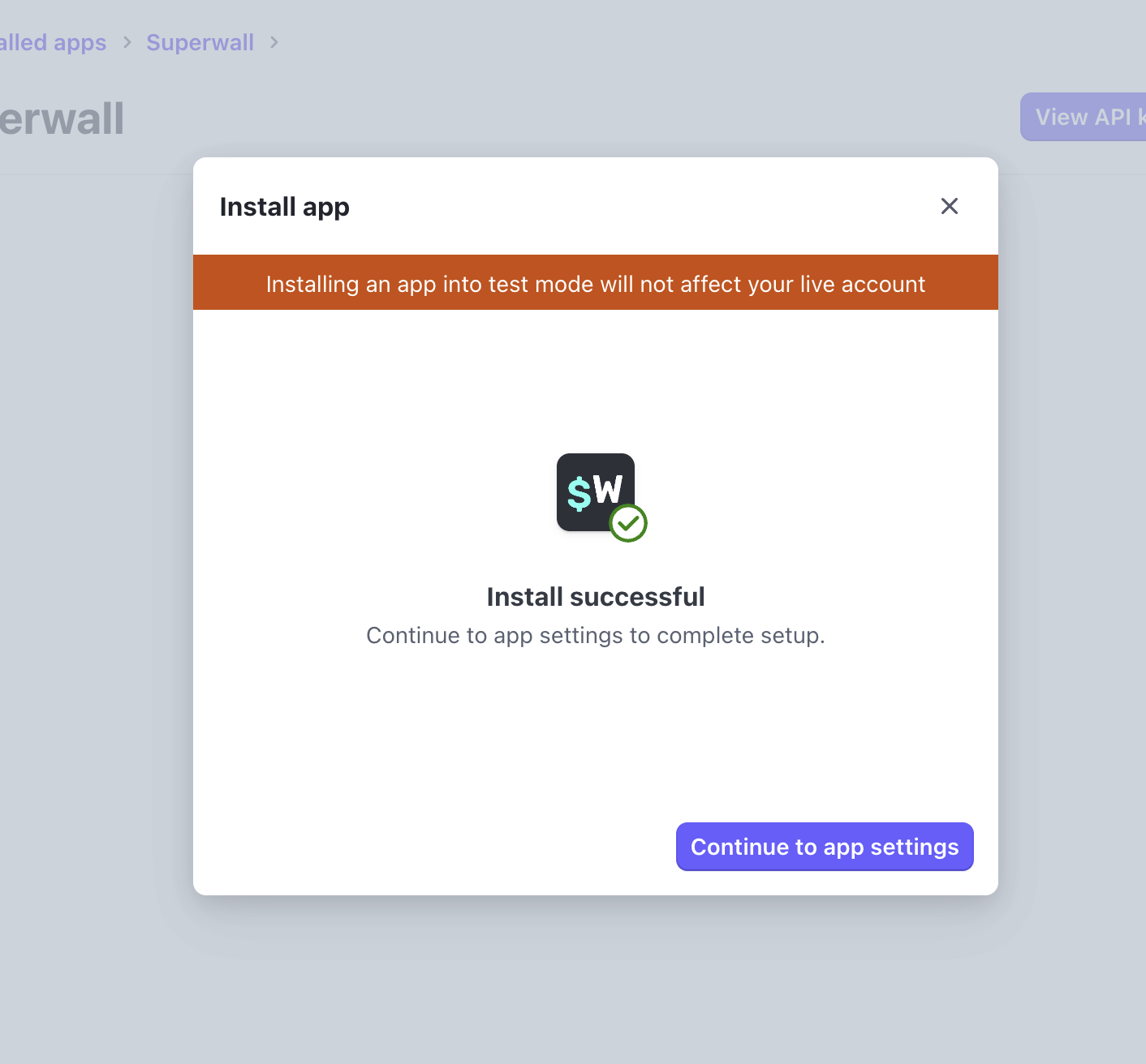 The Superwall Stripe app provides both live and test mode keys. Make sure you're in the correct mode in your Stripe dashboard when copying keys.